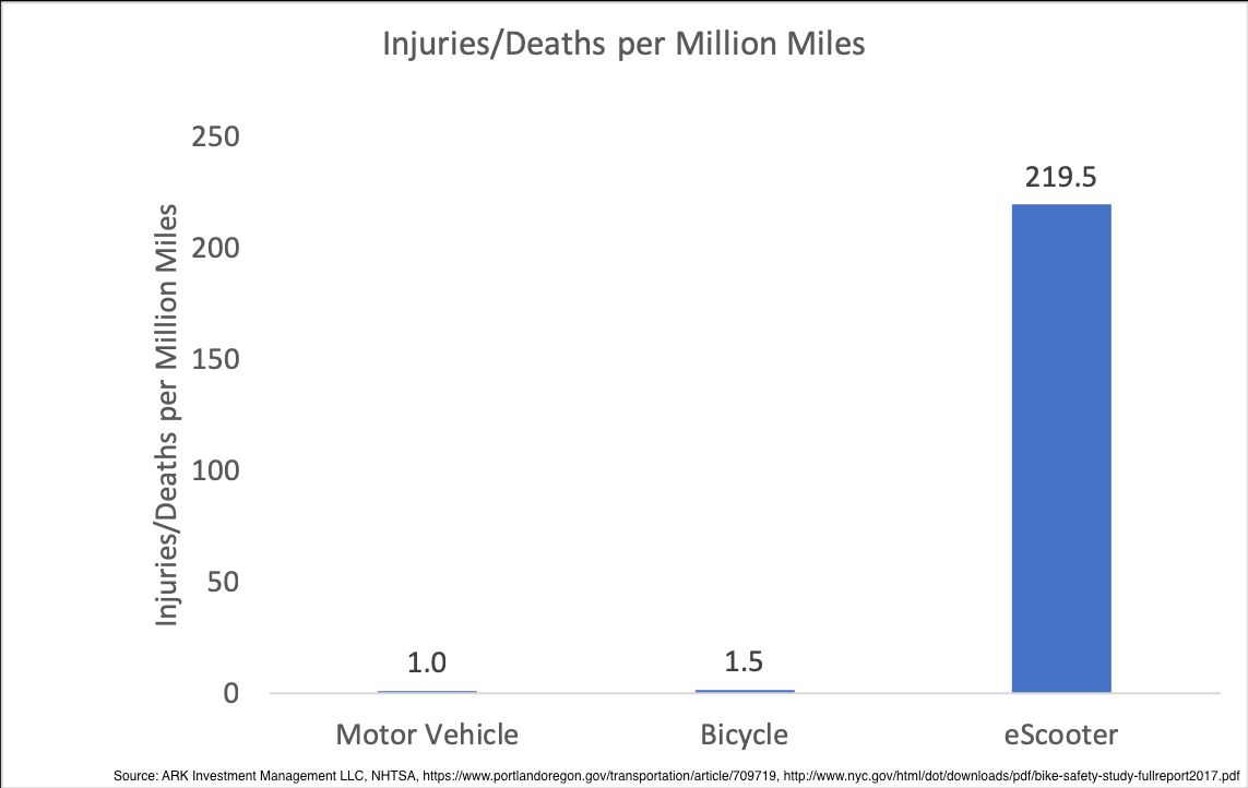 : Put another way, eScooters are currently more than 100x more dangerous than bikes