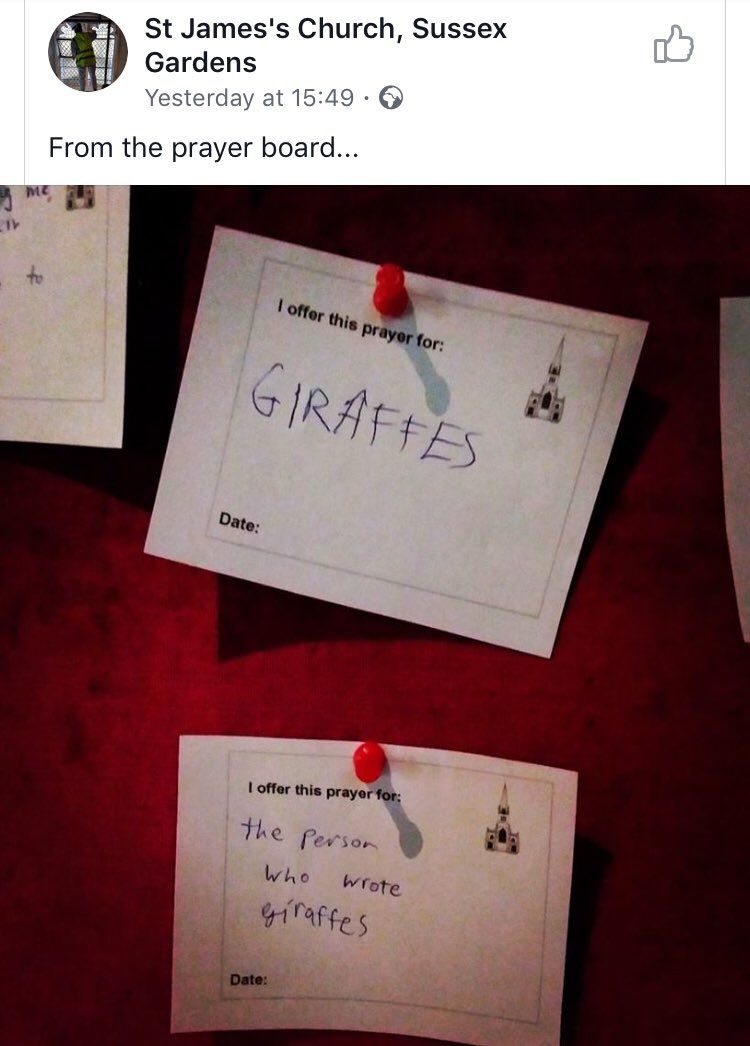 : Seen on a prayer request board at a church in Sussex Gardens