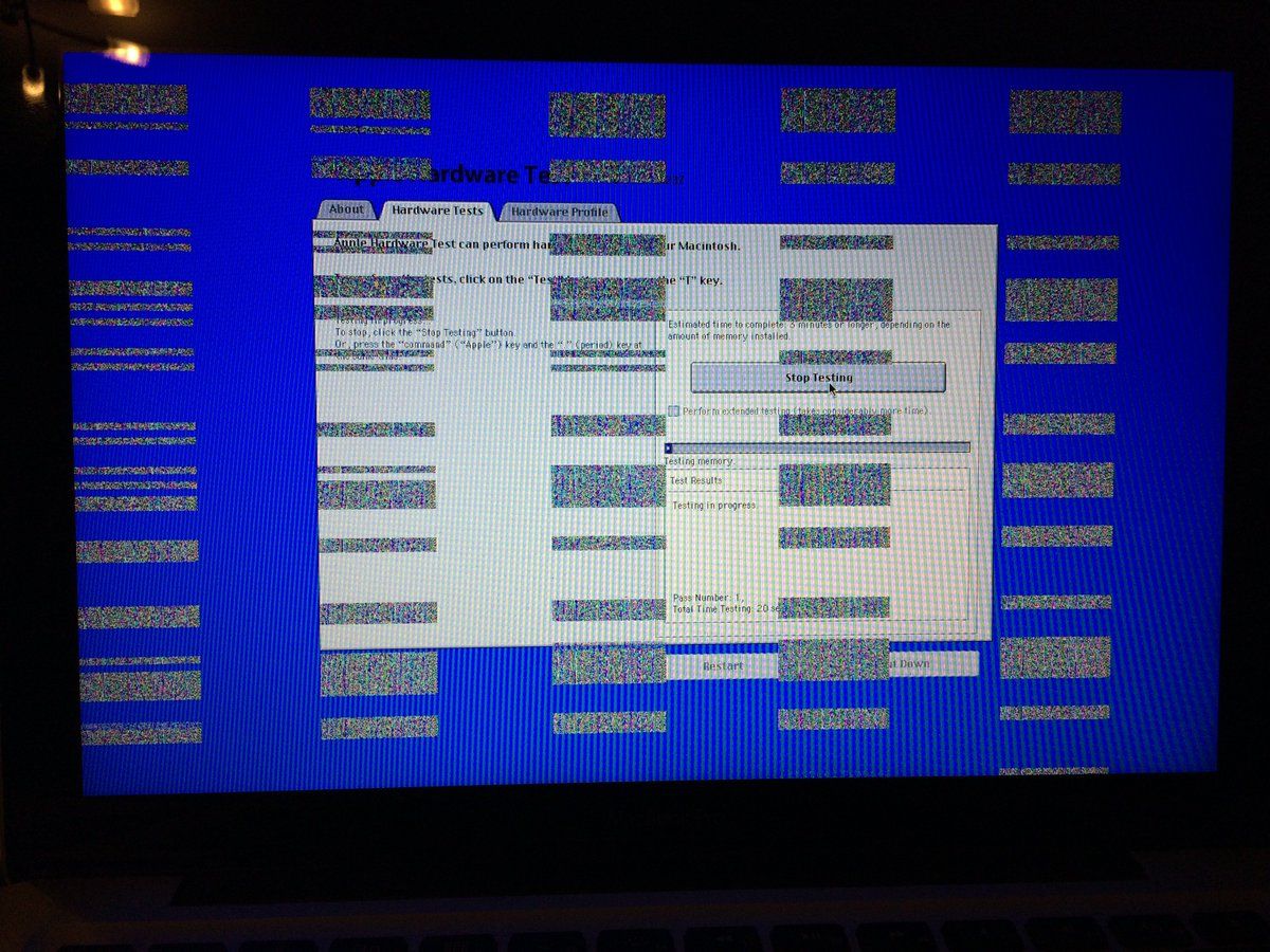 Any #AppleMac experts know what might be causing display glitches like this while running Apple Hardware Test? It's a 2012 MBP.