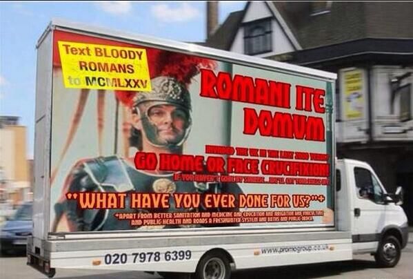 : It says "Romans go home"