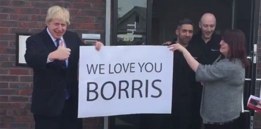 : Boris visits a sign company and they spell his name wrong. This is priceless. #GE2015 #Boris