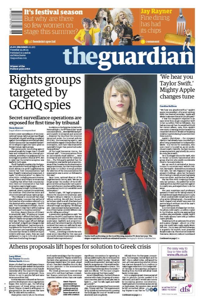 : Human rights groups targeted by GCHQ spies. Tomorrow's Guardian front page