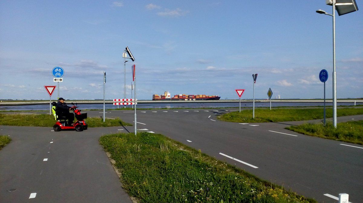 : This Dutch cycle track next to a fast rural road allows access for mobility scooter users.