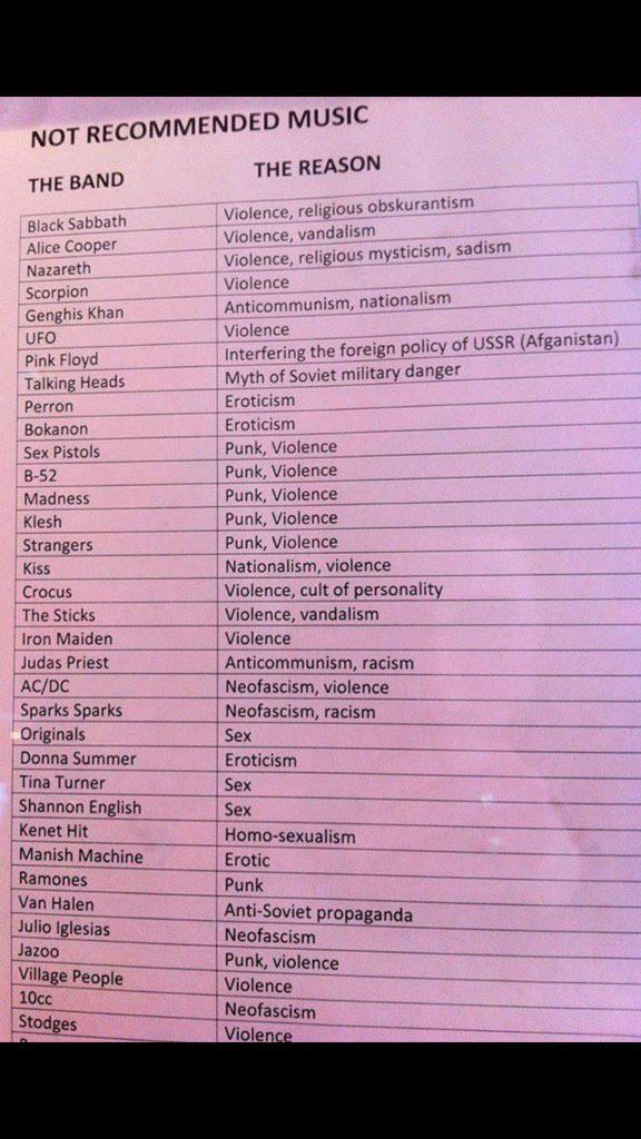 : #recap A list of bands banned by the Soviet Union in 1985, and why